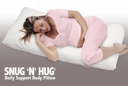 The Snug "N" Hug pillow uniquely patented to enable you to cradle yourself in pure comfort, from head to toe with oversized head pillow for best sleeping comfort. Specially designed for a full body support, to relieve aches and pains, late pregnancy discomfort and so much more. Uniquely shaped to support, head, neck, shoulders, stomach hips, and legs. This Snug "N" Hug pillow is designed to keep your spine aligned in a neutral position. Midsection provides extra back or tummy support depending on the direction you choose to snuggle into. Smaller end comfortably tucks snugly between your knees, to give full support. Removable cozy, cuddly soft microfiber cover, with zipper is machine washable. Hypoallergenic, Imported